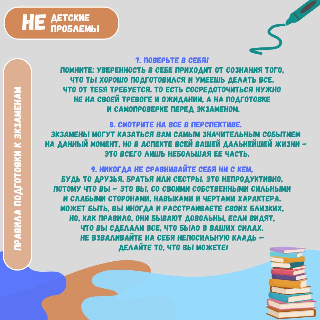 Грамотная организация учебного времени и разнообразные методы усвоения информации помогут укрепить внутреннюю устойчивость и уверенность в своих силах в ответственный момент. Помните, что экзамен – это возможность продемонстрировать свои знания и умения, а не только испытание на стрессоустойчивость. Следуя этим правилам, вы сможете подойти к экзаменам более подготовленным и уверенным. Удачи!