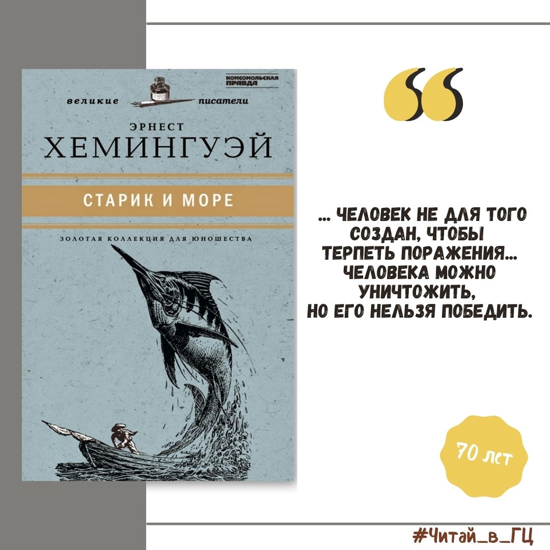 70 лет со времени выхода в свет повести «Старик и море» Эрнеста Хемингуэя (1952).